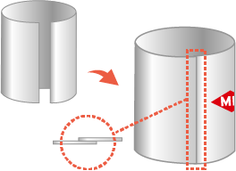 1缶分に切断した素材板を筒状に丸めて接合部を溶接で固めます。